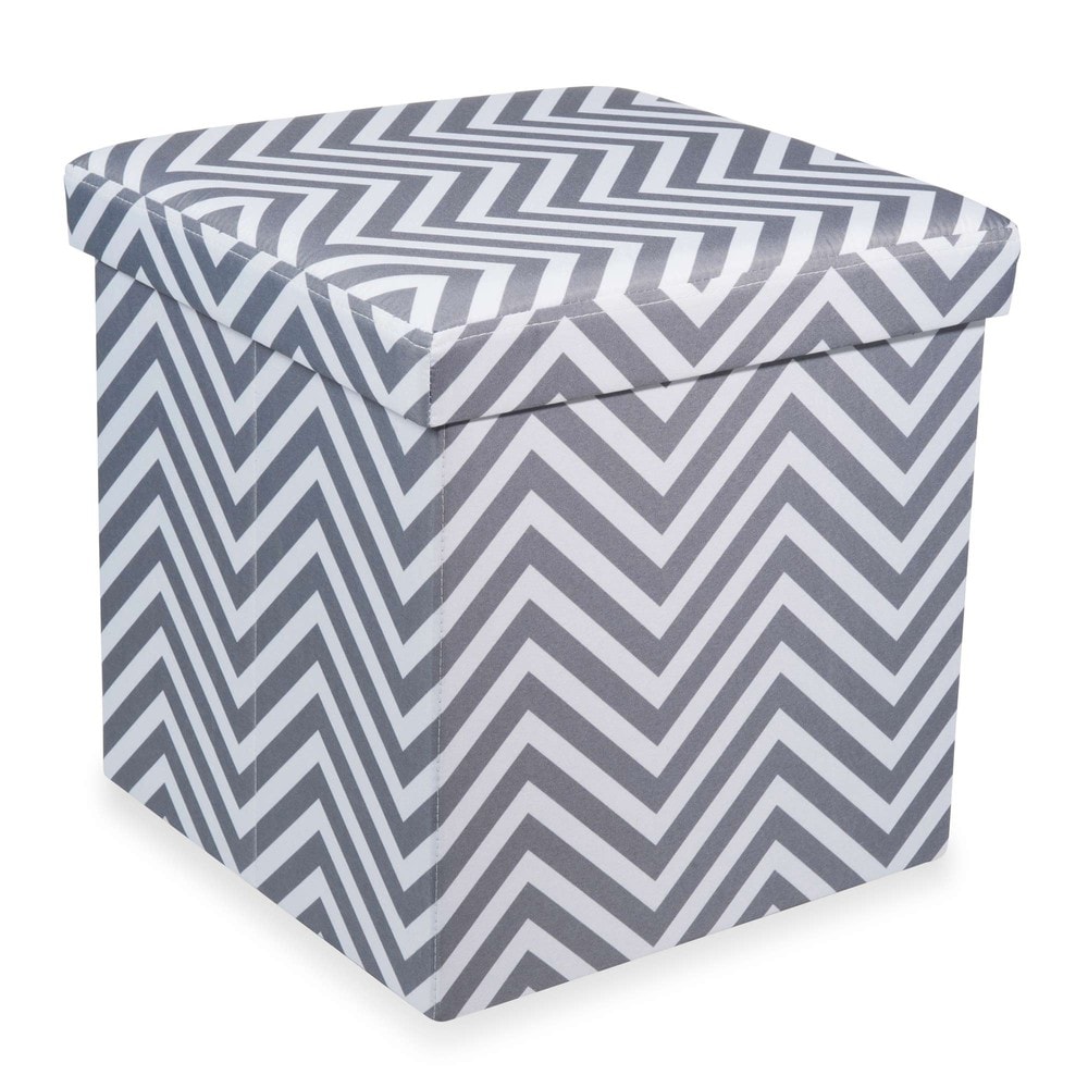 Pouf coffre pliable blanc/gris ZIGZAG Maisons du Monde