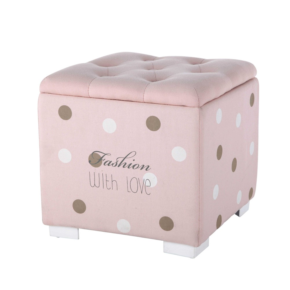 Pouf coffre capitonné à pois en tissu rose BLUSH Maisons du Monde