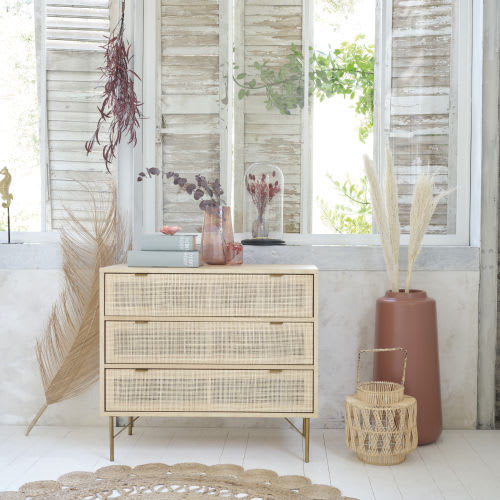 Commode 3 tiroirs cannage en rotin Solstice Maisons du Monde