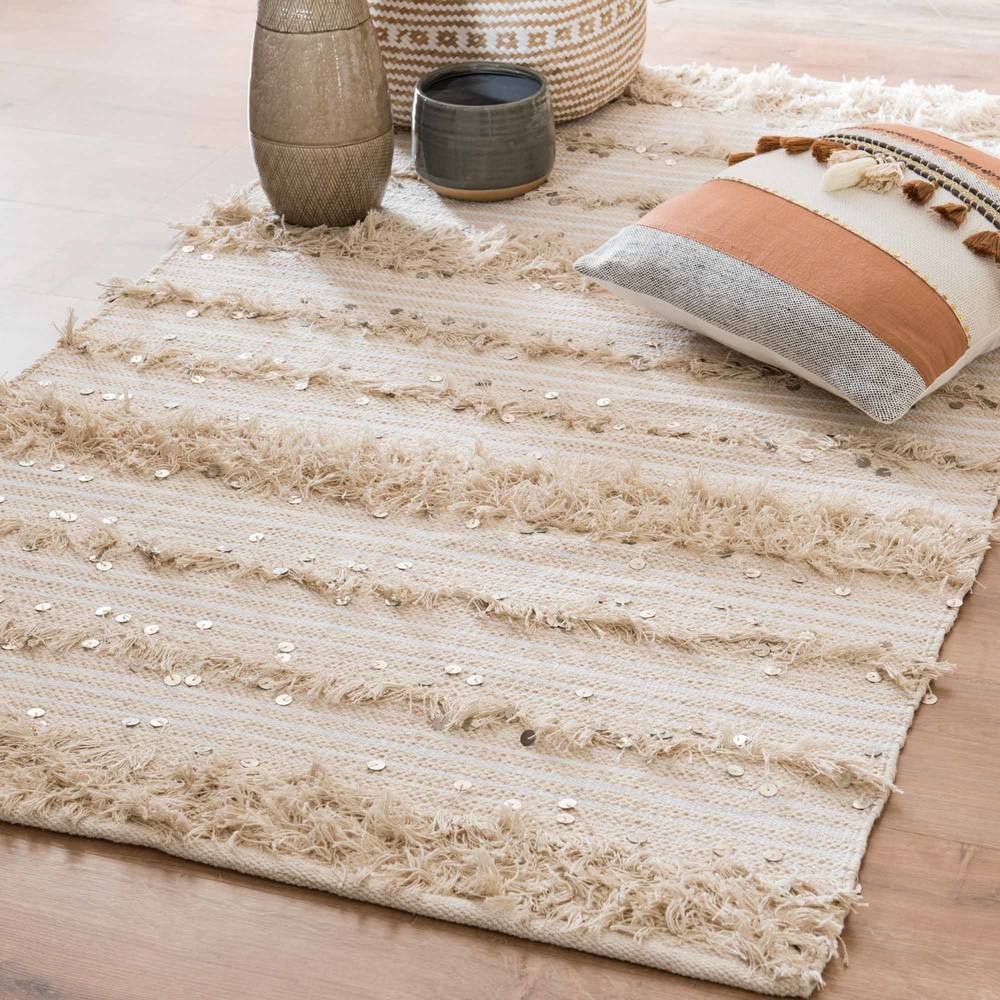 On peut facilement trouver des modeles en coton ecru noir ou dore a moins de 100 dans la collection maison du monde plus precisement des modeles 140 x 200 accessibles a 7999.